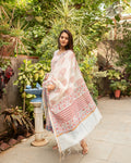 Pair it with natural white narrow pleated Pants and printed Chanderi/ Mul dupatta with delicate hand stitched hemming.