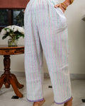 Comfortable cotton pants with border detailing. Featuring an elasticated waist with drawstrings and deep pockets on either sides.