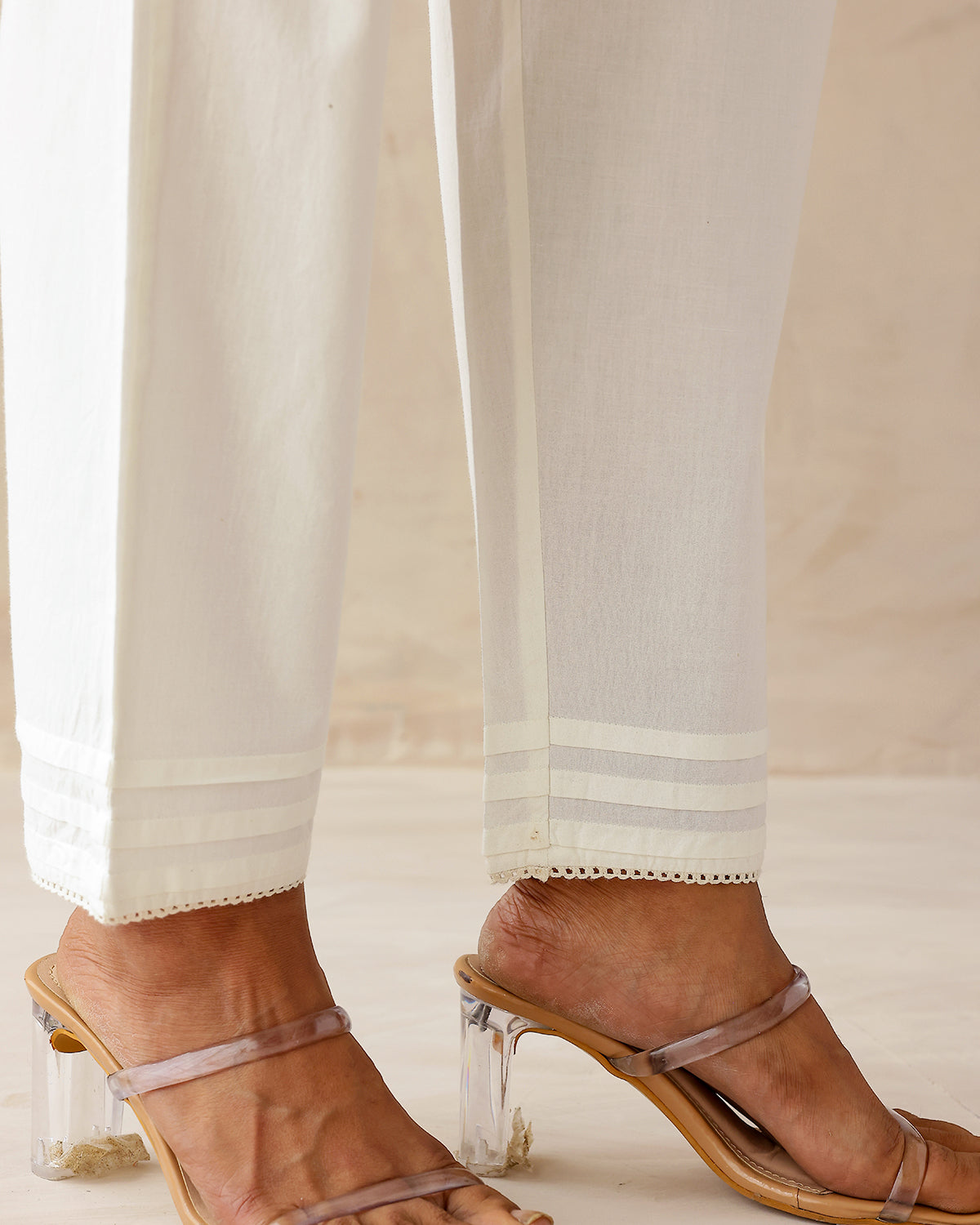Natural white narrow pleated pants